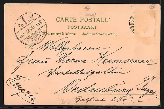 gelaufen 1900, Briefmarke entfernt, guter Zustand