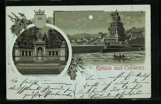 Mondschein-Lithographie Coblenz, Denkmal Kaiser Wilhelm I.