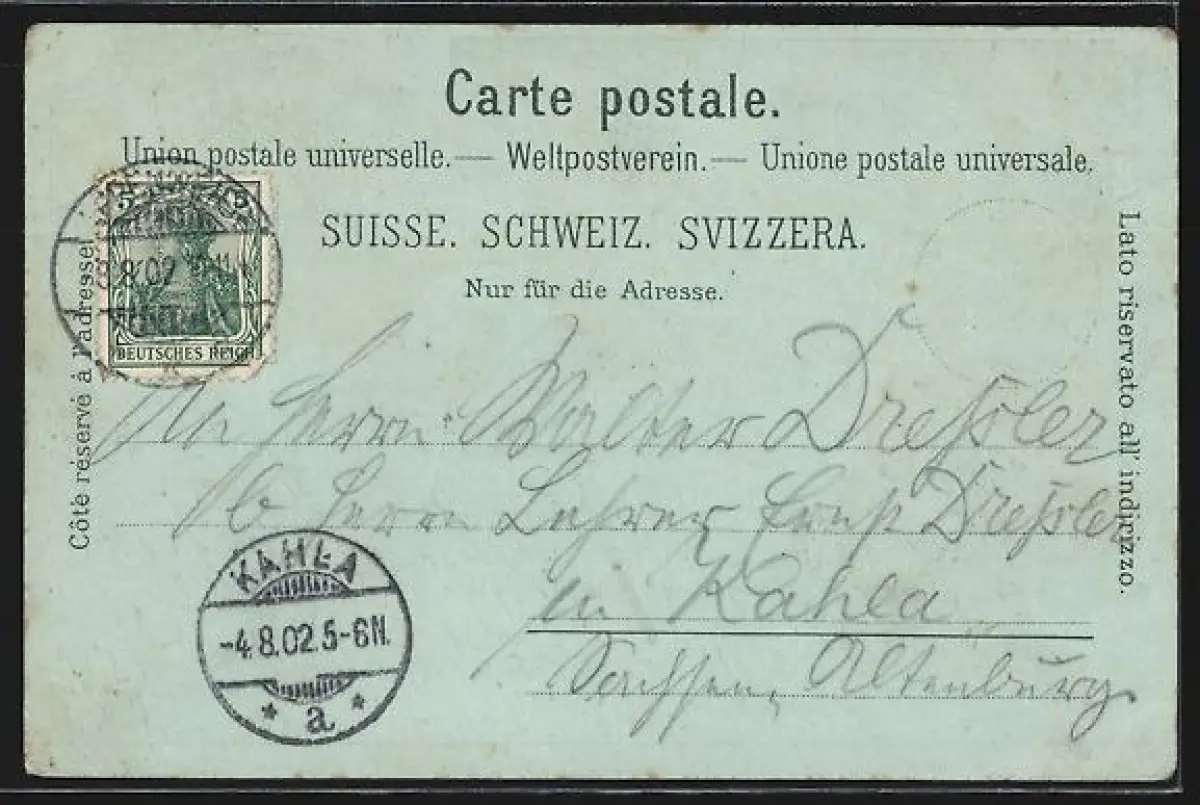 gelaufen 1902, Eckknicke unten, guter Zustand