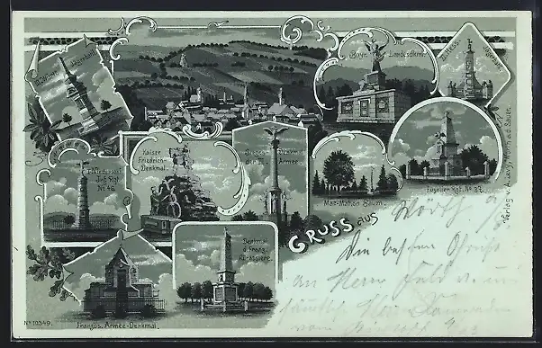 Mondschein-Lithographie Hofen / Elsass, Denkmäler verschiedener Batallione und Regimenter, Mac-Mahon-Baum