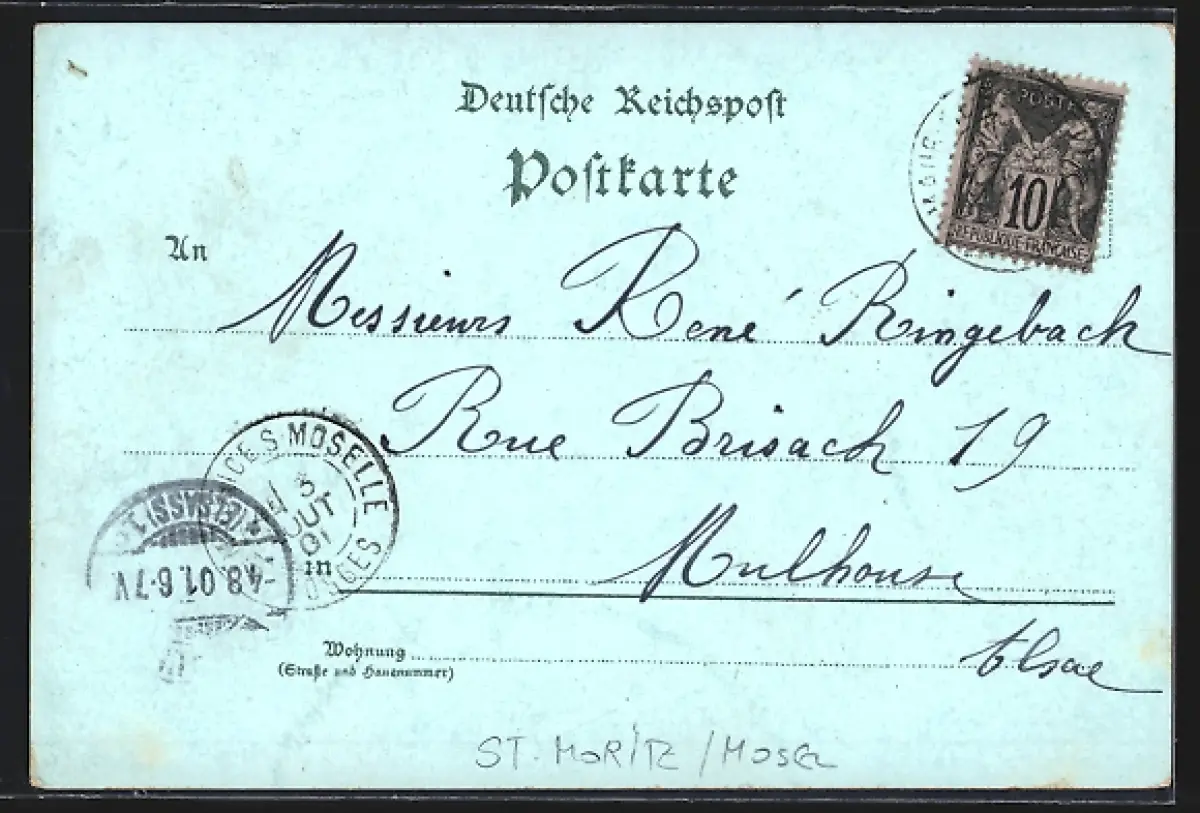 Mondschein-Lithographie St. Moritz /Mosel, Gasthaus zum Roten Wasen, Sternsee