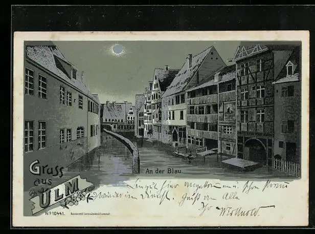Mondschein-Lithographie Ulm, Ortspartie an der Blau