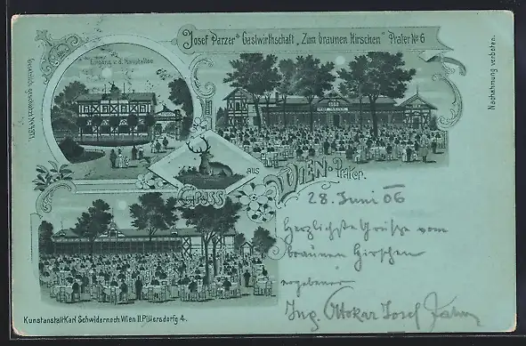 Mondschein-Lithographie Wien, Prater, Josef Parzers Gasthof zum braunen Hirschen