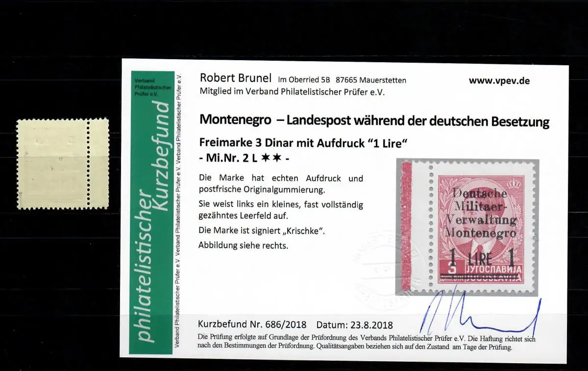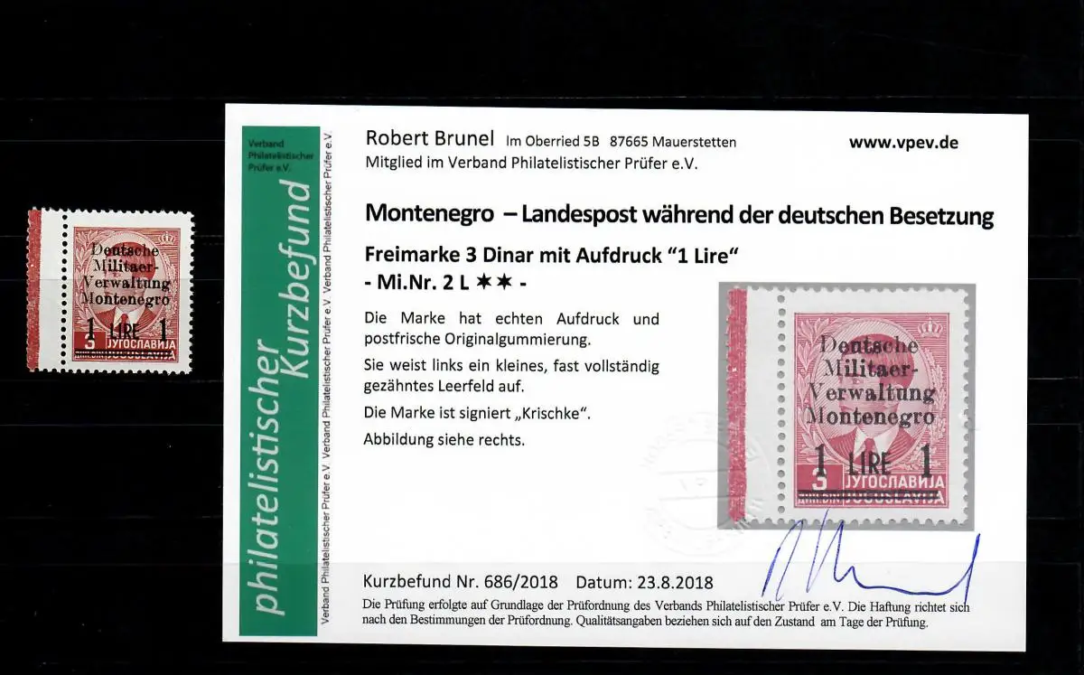 Montenegro: MiNr. 2L, postfrisch, **, Leerfeld links
