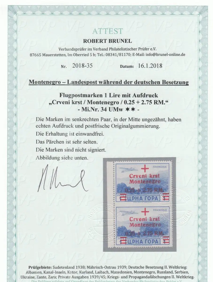 Montenegro: MiNr. 34 UMw, postfrisch, senkrechtes Paar, Mitte ungezähnt