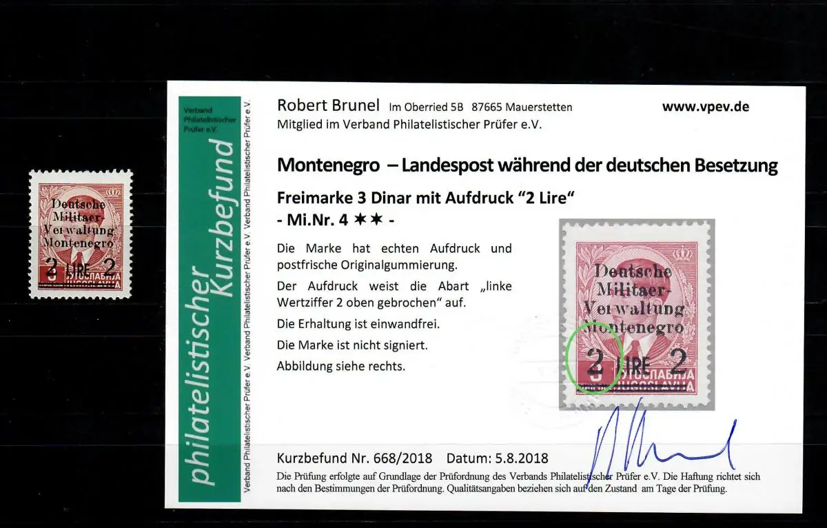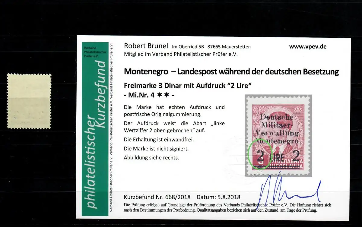 Montenegro: MiNr. 4, postfrisch, **, Abart Wertziffer gebrochen