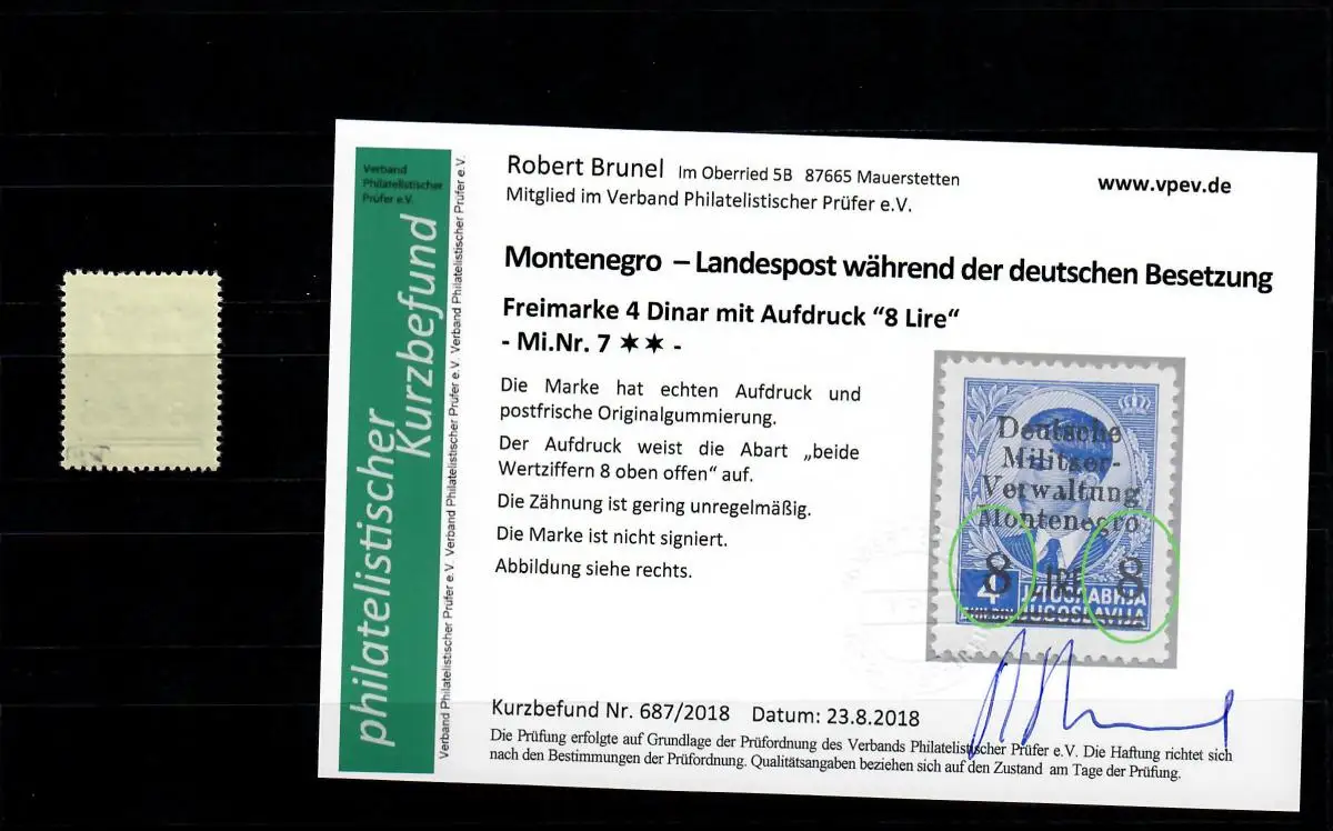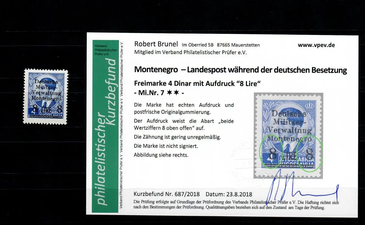 Montenegro: MiNr. 7, postfrisch, **, Abart beide Wertziffern oben offen