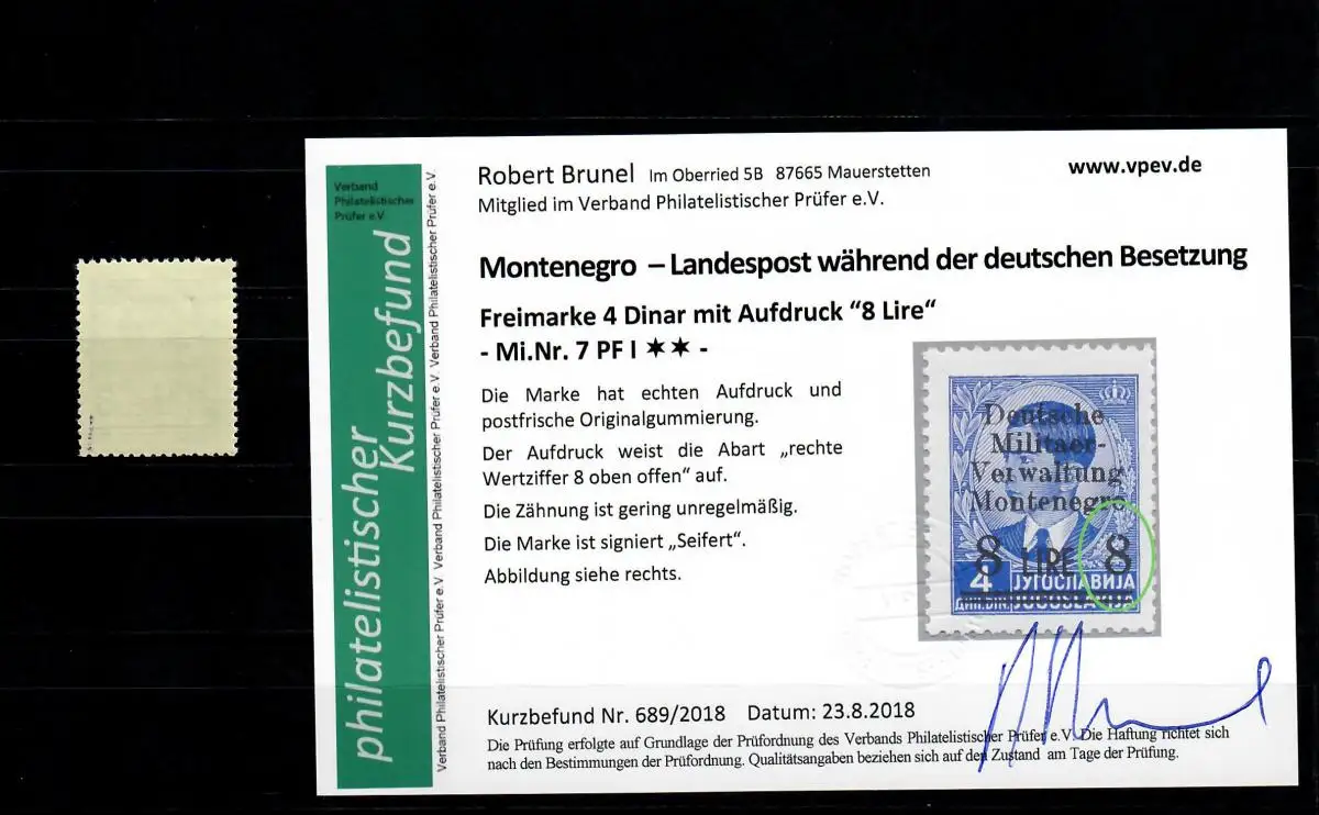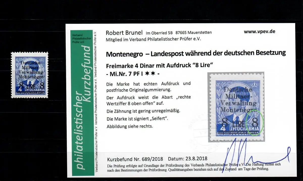 Montenegro: MiNr. 7, postfrisch, **, Plattenfehler I, Wertziffer oben offen