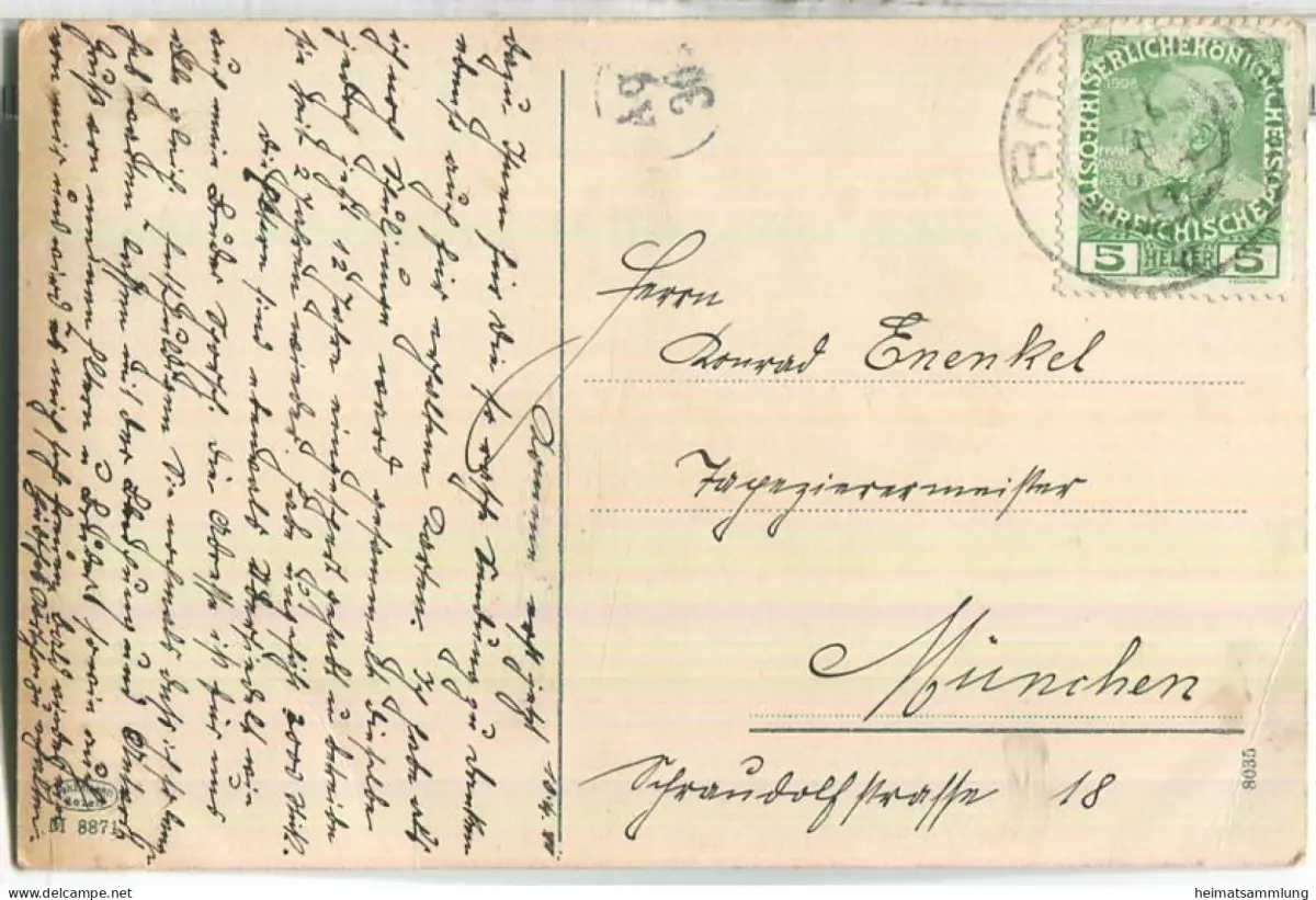 Montiggler-See bei Eppan mit Mendelpass und Mendelstrasse - Verlag Joh. F. Amonn Bozen - Eckknick unten links (E88687) gel. 1911