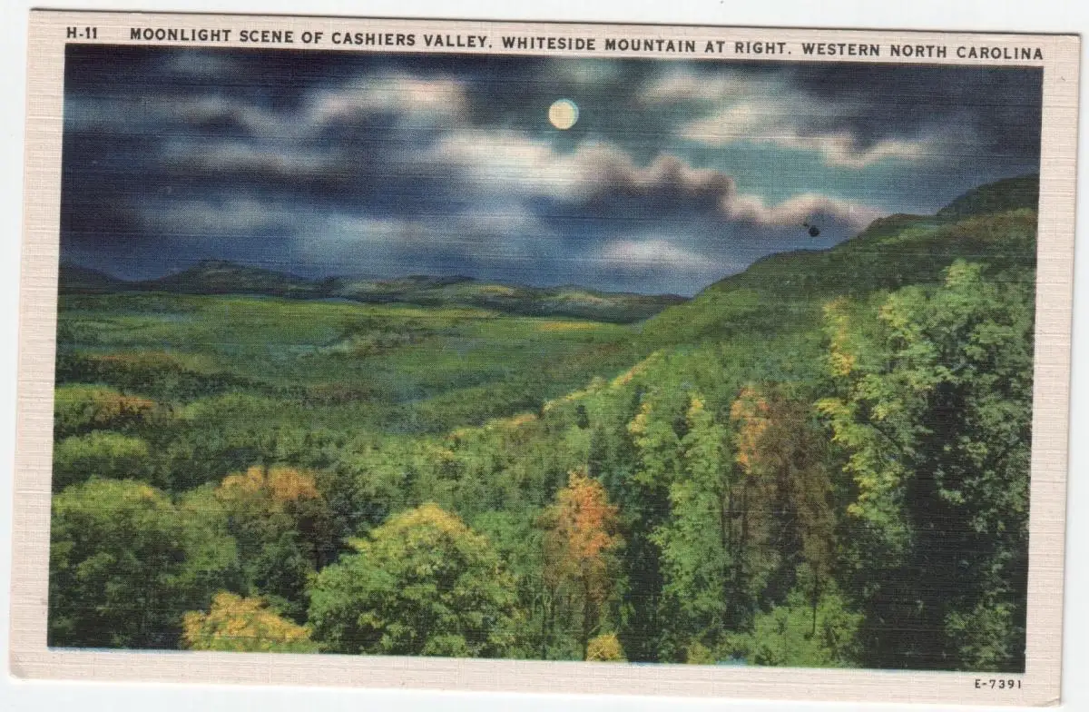 Moonlight Scene of Cashiers Valley. Whiteside Mountain At Right. Western NC