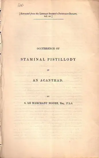Moore, S. Le Marchant: Occurrence of staminal pistillody in an acanthad. Extracted from the Linnean Society´s Journal-Botany, Vol. XV.