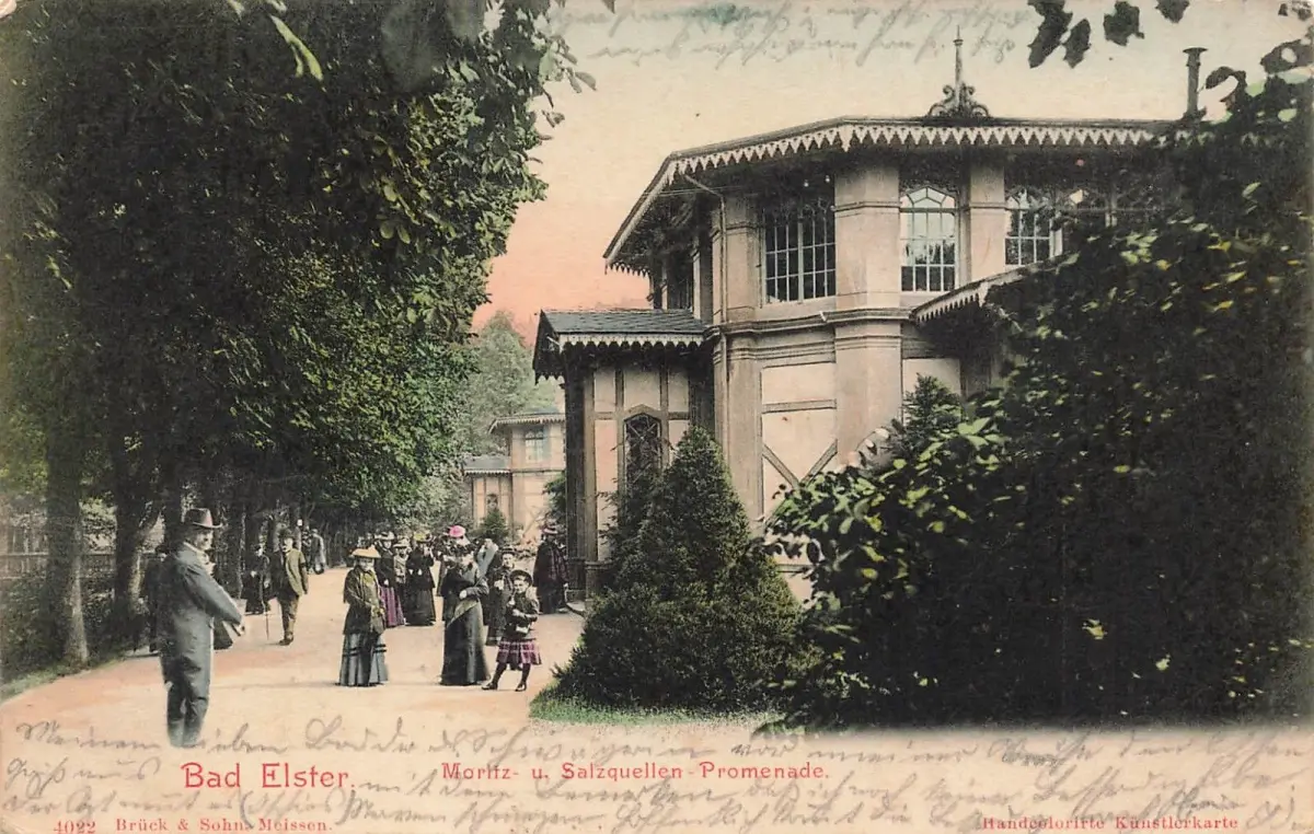Moritz- und Salzquellen-Promenade in Bad Elster Sachsen Postkarte AK 1903