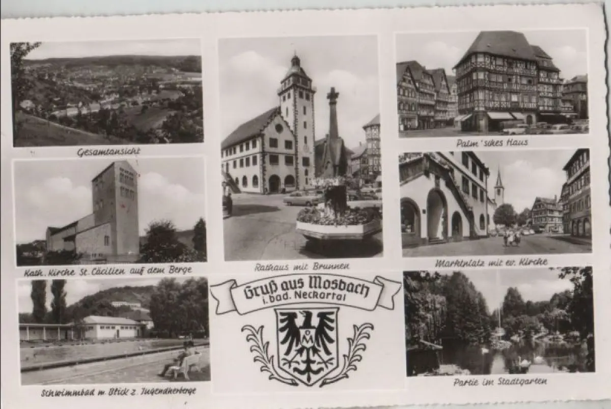 Mosbach - u.a. Rathaus mit Brunnen - ca. 1960