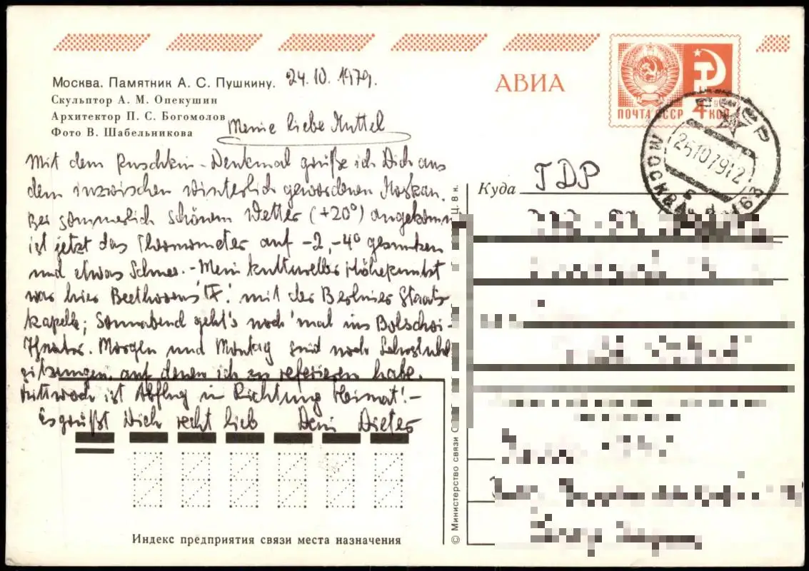 Moskau Москва́ Denkmal Скульптор А. М. Опекушин 1979