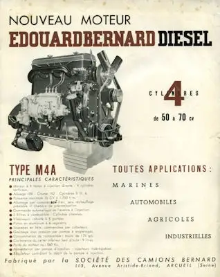 Moteur E.Bernard Diesel M4A Prospekt 1940er Jahre