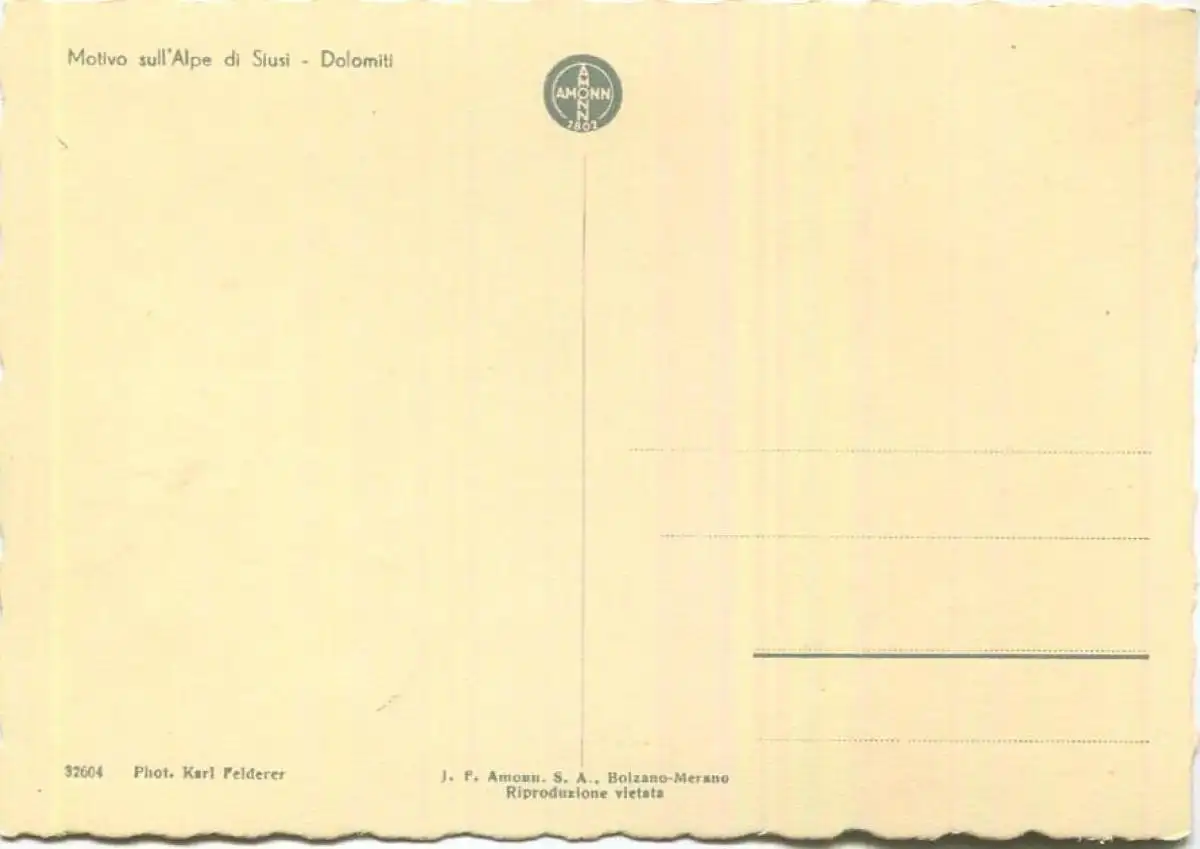 Motivo sull' Alpe di Siusi - Foto-AK Grossformat - Photo Karl Felderer - Verlag J. F. Amonn Bolzano Nr. 32604