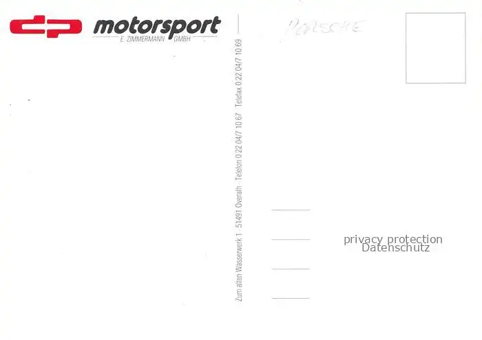 Motorsport Racing E. Zimmermann dp Auto postalisch nicht gelaufen Erhaltung siehe scans [IrynaD87]