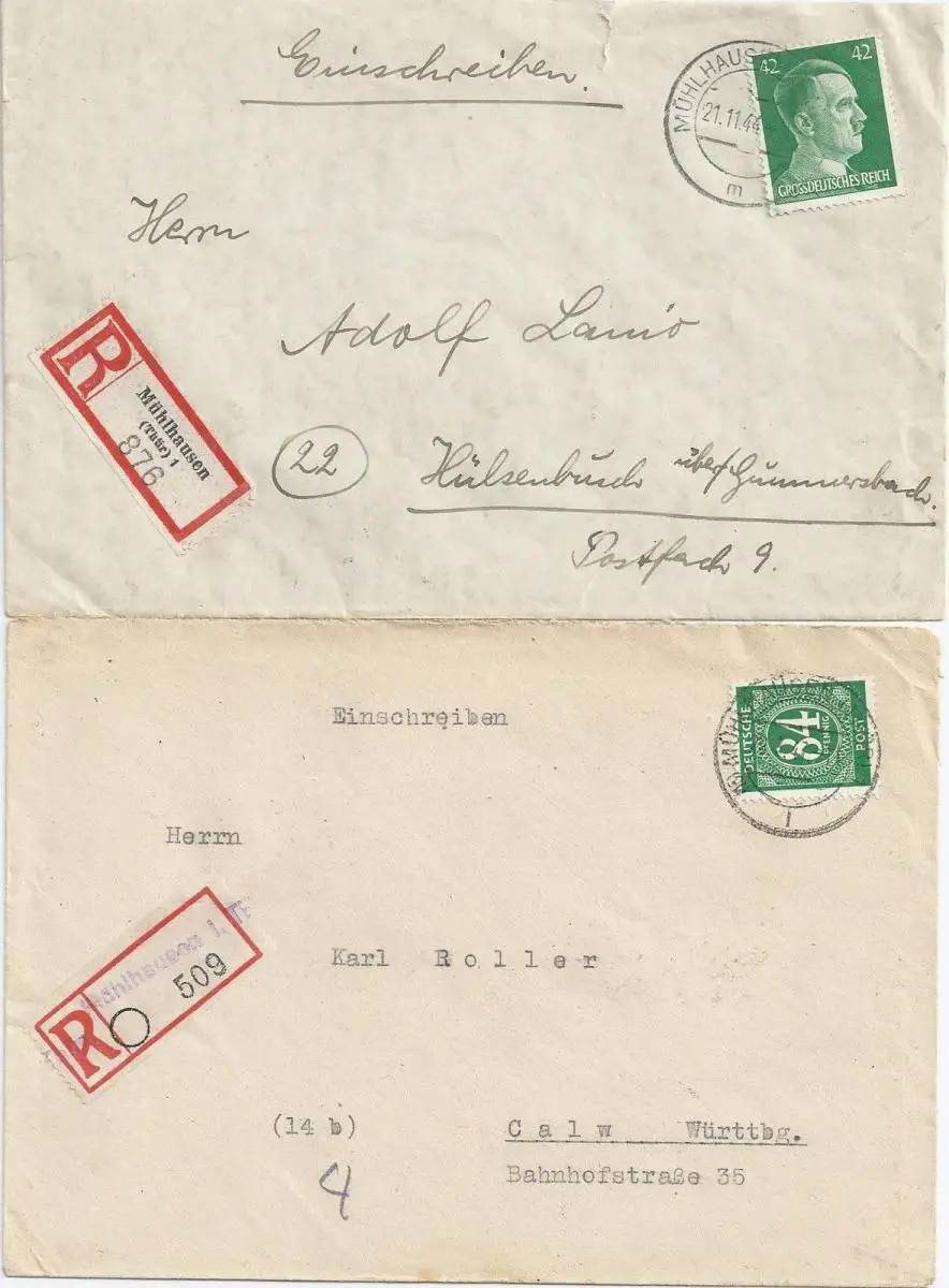 Mühlhausen Thür., 2 Einschreiben Brief, 1x eingestempelter Not Reko Zettel #2178