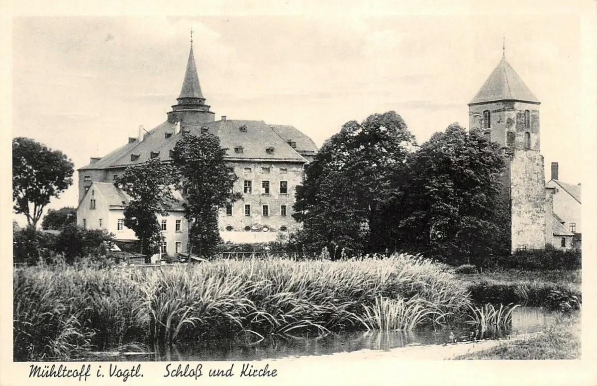Mühltroff i. Vogtl. Schloß und Kirche Postkarte AK