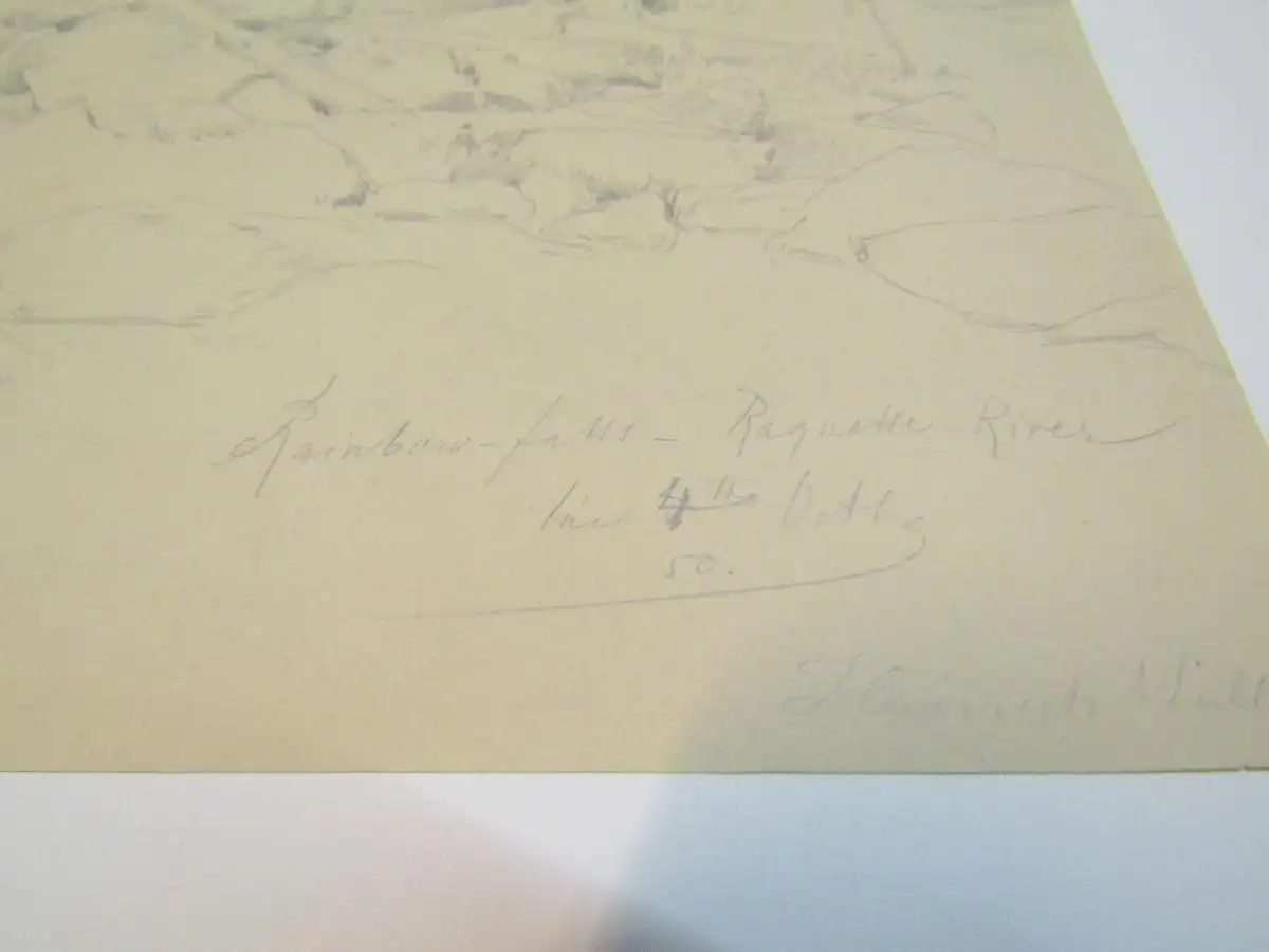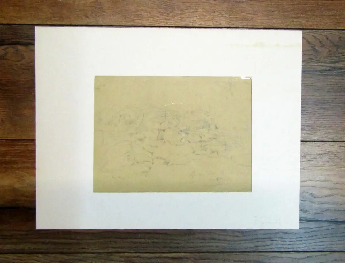 An den o. Ecken im einfachen Psp. montiert. Leicht knickspurig, minimal lichtrandig, O.li.Ecke fehlend. Am li.Rand eine winzige Fehlstelle(ca.2x4mm). An den o.Ecken Klebemittel leicht durchgedrungen. Wenig vereinzelte unscheinbare Stockfleckchen.- U.re. in Blei ausführlich betitelt"4th Oct.50" und betitelt,u.re. alt künstlerbezeichnet(?)"Heinrich Müller", Verso in Blei von fremder Hand alt bezeichnet