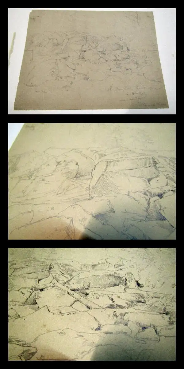 1 Bleistiftzeichnung auf chamoisfarbenen "Whatman-Papier".
