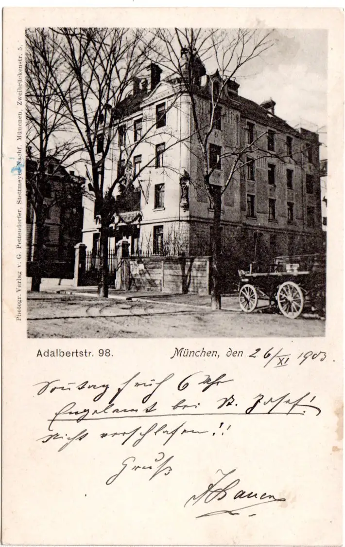 München, Bürgerhaus Adalbertstr. 98, 1903 m. 2 Pf. gebr. sw-AK