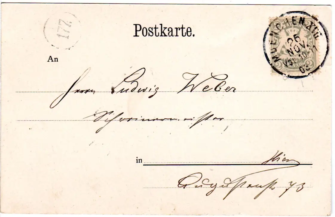 schöne Ortskarte m. K1 MUENCHEN XVII u,d Briefträgerstpl. 177.