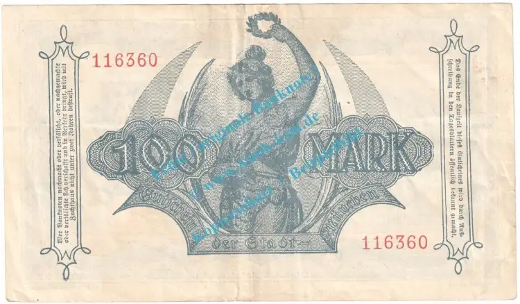 Gutschein / Banknote über Einhundert Mark , Stadt München , Großnotgeld - InflationBundesland : Bayern  ,  Müller : 3015.1.a