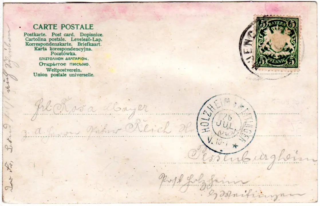 Attraktive Karte n. Holzheim b. Meitingen (Ankunftstpl. anschriftsseitig).