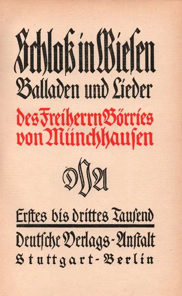 Münchhausen, Börries Freiherr von: Schloß in Wiesen. Balladen und Lieder. 1.-3. Tsd.