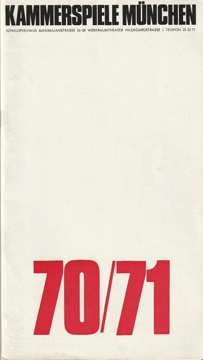 oder DIE EINFÜHRUNG DER BUCHHALTUNG. Inszenierung: Paul Verhoeven. Regie-Assistenz: Jürgen Flimm / Ernö Weil. Bühne: Jörg Zimmermann. Musik: Peter Fischer. Mitwirkende: Vadim Glowna, Götz Burger, karl Renar, Hans-Peter Halleachs, Peter Pasetti, Peter Lühr, Romuald Pekny / Wolfgang Büttner, Heinz Baumann, Walter Schmidinger, Hans Drahn, u.a. - Theaterprogramm, Opernprogramm, Ballettprogramm, Musicalprogramm, Konzertprogramm, Theatermemorabilia, Programmhefte Sammlung, deutsche Theatergeschichte.
