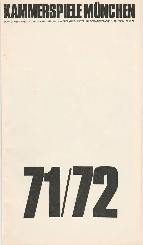 Inszenierung: Oswald Döpke. Bühne und Kostüme: Heinz Eickmeyer. Musik: Michael Rüggeberg. Mitwirkende: Peter Matic, Werner Kreindl, Louise Martini, Wilmut Borell, Monica Bleibtreu, Günther Maria Halmer, u.a. - Theaterprogramm, Opernprogramm, Ballettprogramm, Musicalprogramm, Konzertprogramm, Theatermemorabilia, Programmhefte Sammlung, deutsche Theatergeschichte.