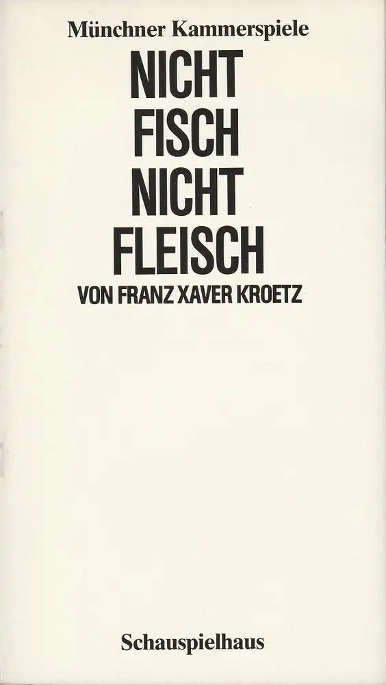Münchner Fassung. Regie: Franz Xaver Kroetz. Bühne, Kostüme: Klaus Hellenstein. Mitwirkende: Monika Baumgartner, Franziska Walser, Josef Bierbichler, Felix von Manteuffel - Theaterprogramm, Opernprogramm, Ballettprogramm, Musicalprogramm, Konzertprogramm, Theatermemorabilia, Programmhefte Sammlung, deutsche Theatergeschichte.
