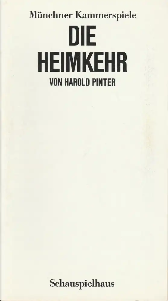 Münchner Kammerspiele, Dieter Dorn, Hans-Joachim Ruckhäberle, Bernd Wilms: Programmheft DIE HEIMKEHR von Harold Pinter. Premiere 8. Juni 1986 Schauspielhaus Spielzeit 1985 / 86 Heft 5.
