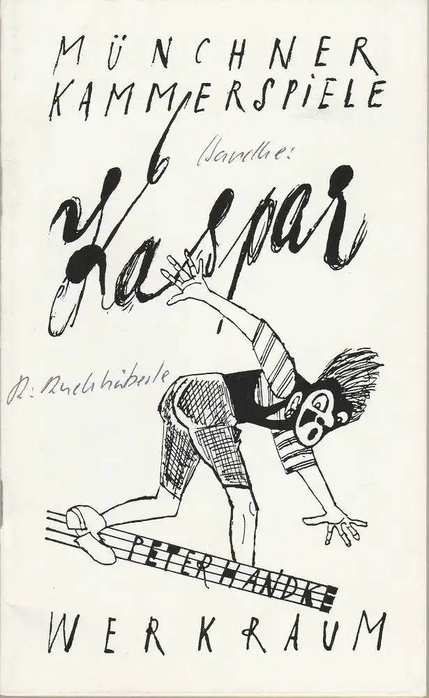 Münchner Kammerspiele, Dieter Dorn, Hans-Joachim Ruckhäberle, Volker Pfüller, Hermann Malzer, Wolfgang Zimmermann: Programmheft KASPAR von Peter Handke Premiere 5. November 1989 Spielzeit 1989 / 90 Werkraum Heft 1.