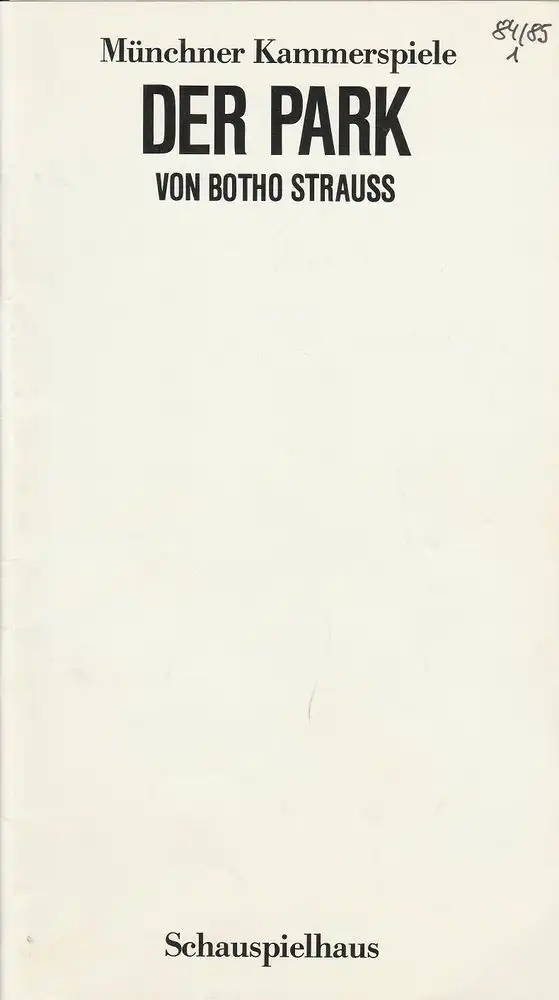 Titel: Programmheft DER PARK von Botho Strauß. Premiere 13. Oktober 1984
