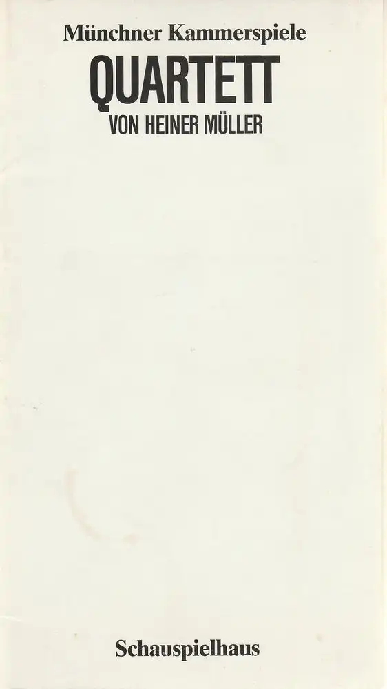 Münchner Kammerspiele, Dieter Dorn, Heiner Gimmler, Wolfgang Zimmermann: Programmheft QUARTETT von Heiner Müller. Premiere 20. November 1983 Schauspielhaus Spielzeit 1983 / 84 Heft 3.