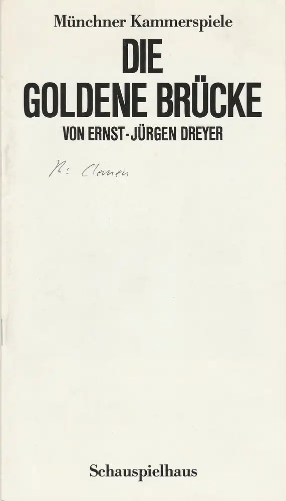 Regie: Harald Clemen. Bühne und Kostüme: Jürgen Rose. Dramaturgie: Heiner Gimmler. Mitwirkende: Rudolf Wessely, Heide von Strombeck, Irene Clarin, August Zirner, u.a. - Theaterprogramm, Opernprogramm, Ballettprogramm, Musicalprogramm, Konzertprogramm, Theatermemorabilia, Programmhefte Sammlung, deutsche Theatergeschichte.