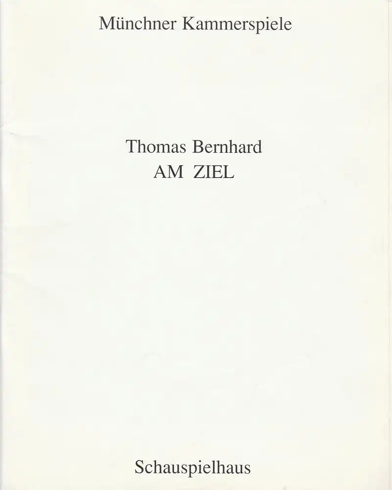 Münchner Kammerspiele, Dieter Dorn, Hermann Malzer, Wolfgang Zimmermann: Programmheft Thomas Bernhard AM ZIEL Premiere 23. Oktober 1993 Schauspielhaus Spielzeit 1993 / 94 Heft 1.