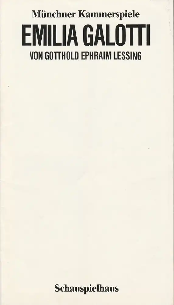 original Heft, nicht paginiert, ca. 32 Seiten, einige Illustrationen, Mittelteil ausklappbar, beiliegendes Heft mit Besetzungsliste und Szenenfotos zu verschiedenen Aufführungen ( 2 x Emilia Galotti ). Zustand: gut, leichte mittige Faltspur