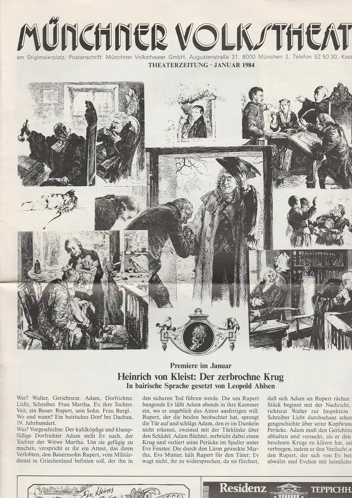 Thema u.a.: Premiere im Januar Heinrich von Kleist: Der zerbrochne Krug. In bairische Sprache gesetzt von Leopold Ahlsen - Theaterprogramm, Opernprogramm, Ballettprogramm, Musicalprogramm, Konzertprogramm, Theatermemorabilia, Programmhefte Sammlung, deutsche Theatergeschichte.