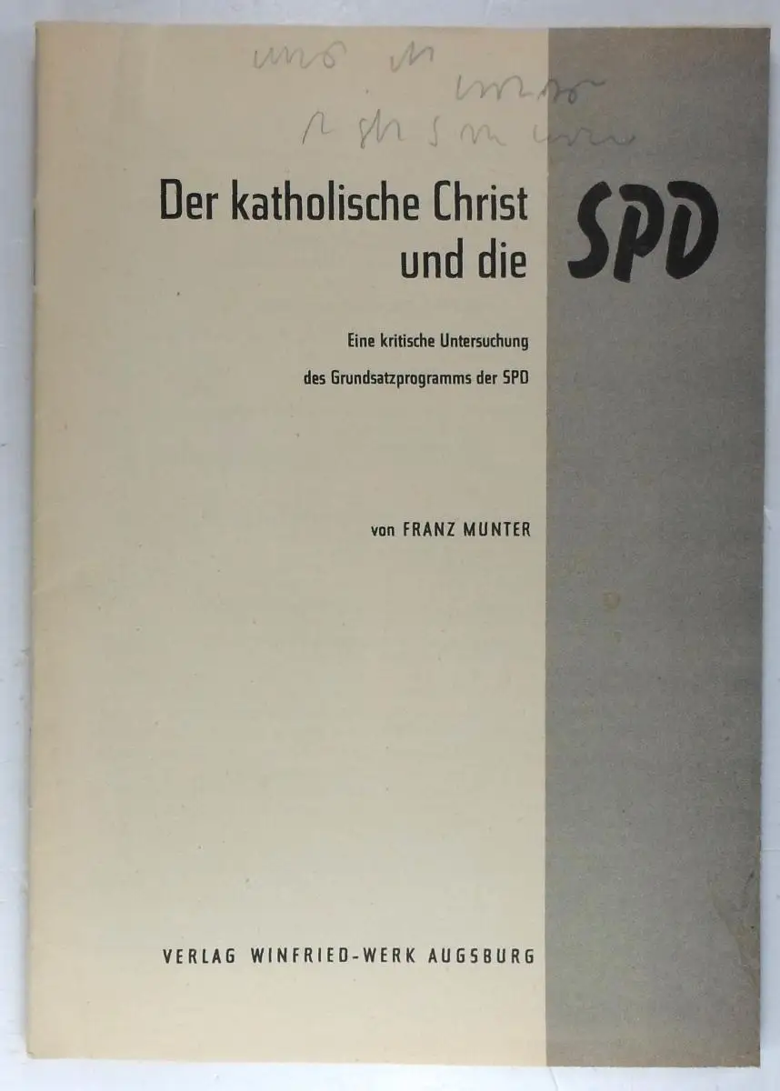 Munter, Franz: Der katholische Christ und die SPD. Eine kritische Untersuchung des Grundsatzprogramms der SPD.