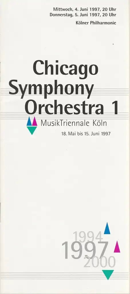MusikTriennale Köln, Franz Xaver Ohnesorg, Sebastian Loelgen: Programmheft CHICAGO SYMPHONY ORCHESTRA 1 4. - 5. Juni 1997 Kölner Philharmonie.