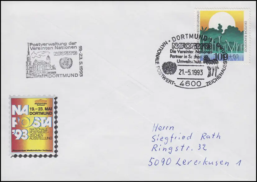 NAPOSTA Dortmund 1993, Bf SSt Dortmund Umweltschutz Zebra 21.5.95 & UNO-Stempel