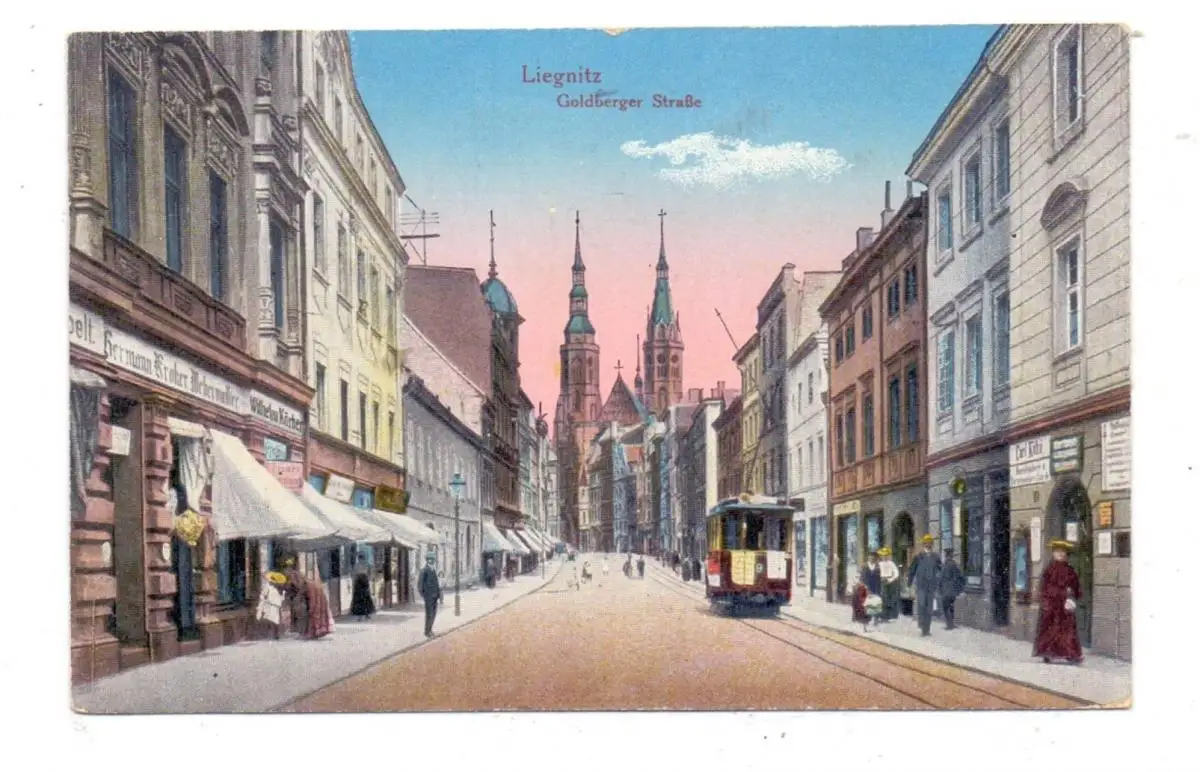 NIEDERSCHLESIEN - LIEGNITZ / LEGNICA, Goldberger Strasse, Strassenbahn / Tram, 1918