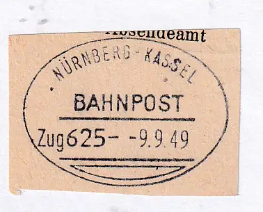 NÜRNBERG-KASSEL BAHNPOST Zug 625 9.9.49 auf Briefstück
