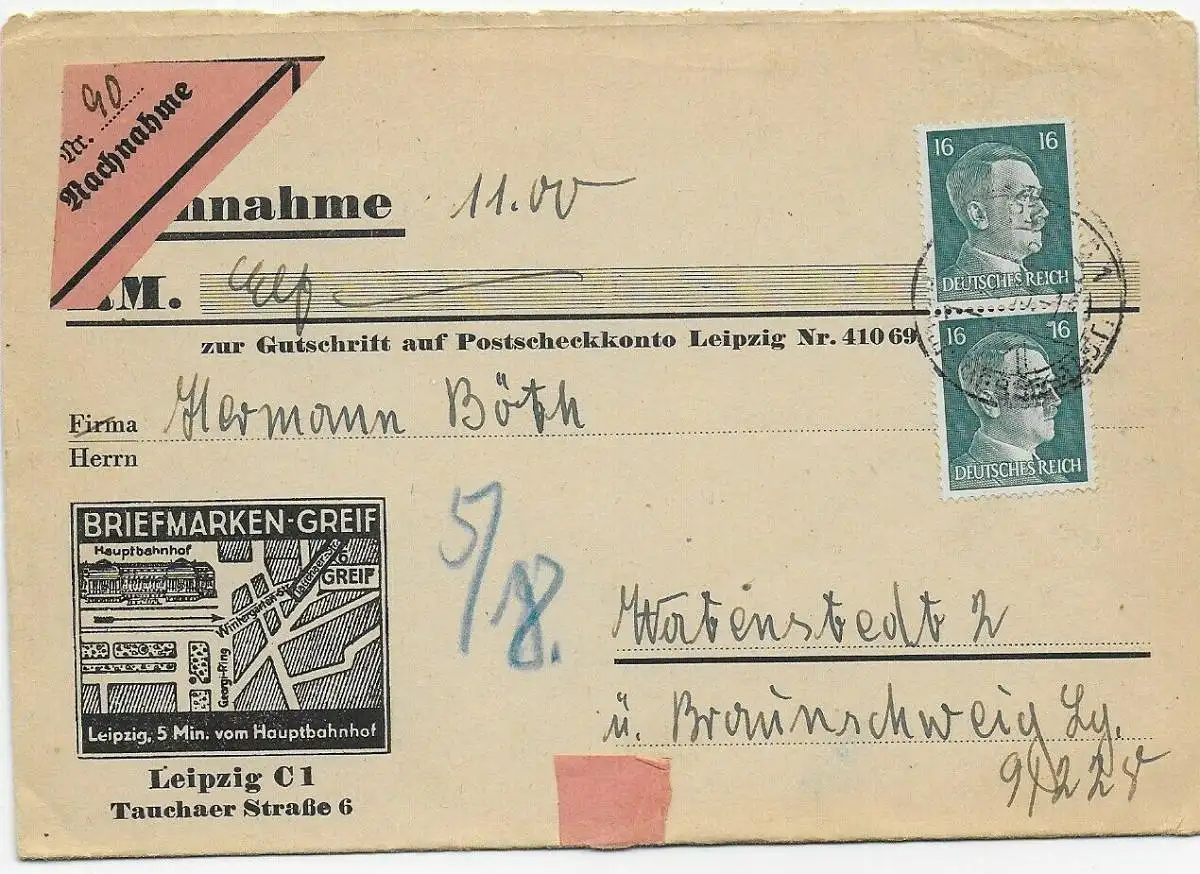 Nachnahme Leipzig nach Watenstedt, MeF, 1943