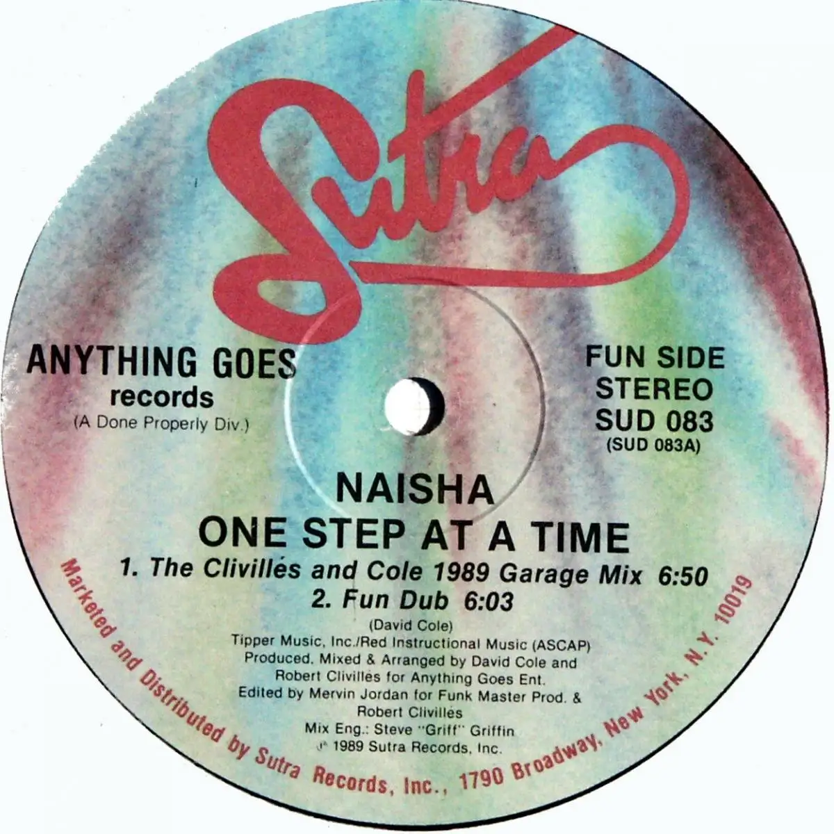 12" Maxi Naisha - One Step At Time, Einheitscover der Plattenfirma; Clivilles & Cole, Zustand Platte M- Hülle M-; Made in United States 1989 Sutra SUD 083, Tracks The Clivillés & Cole 1989 Garage Mix 6:50, Fun Dub 6:03, The Hot Cole & Clivillés Club Mix 7:40, Notice The House Dub 6:35