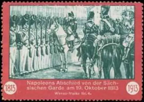 von der Sächsischen Garde am 19. Oktober 1813, Wernau-Marke Nr. 4, Größe/Zustand: 5x7 , guter Zustand, Original alte Reklamemarke die seinerzeit für die Werbung benutzt wurde