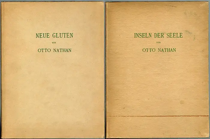 Nathan, Otto: [1] Neue Gluten. [2] Inseln der Seele Berlin, im Selbstverlag des Verfassers, ohne Jahr [1925 oder wenig früher].